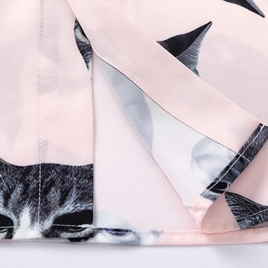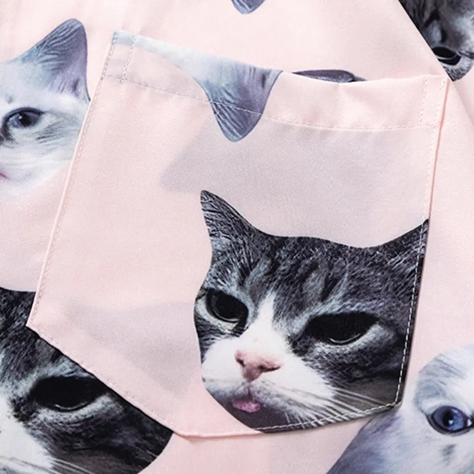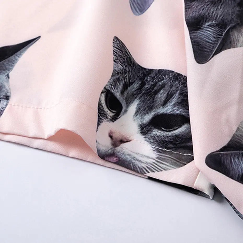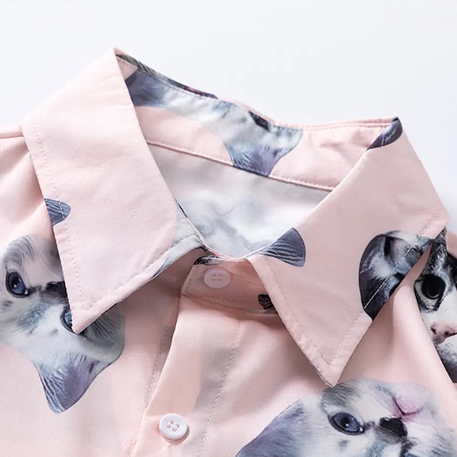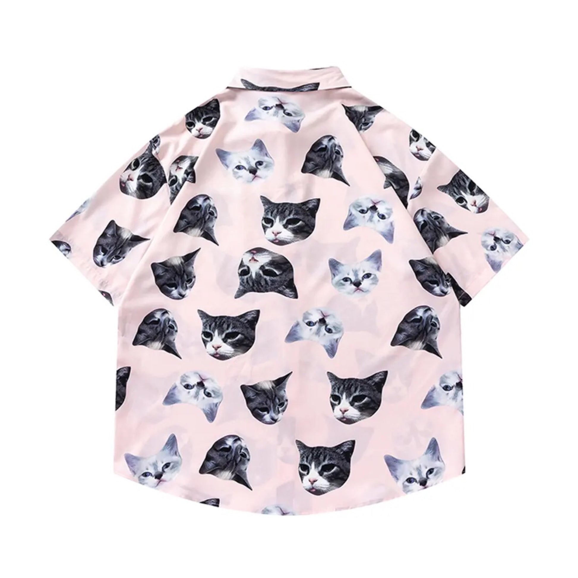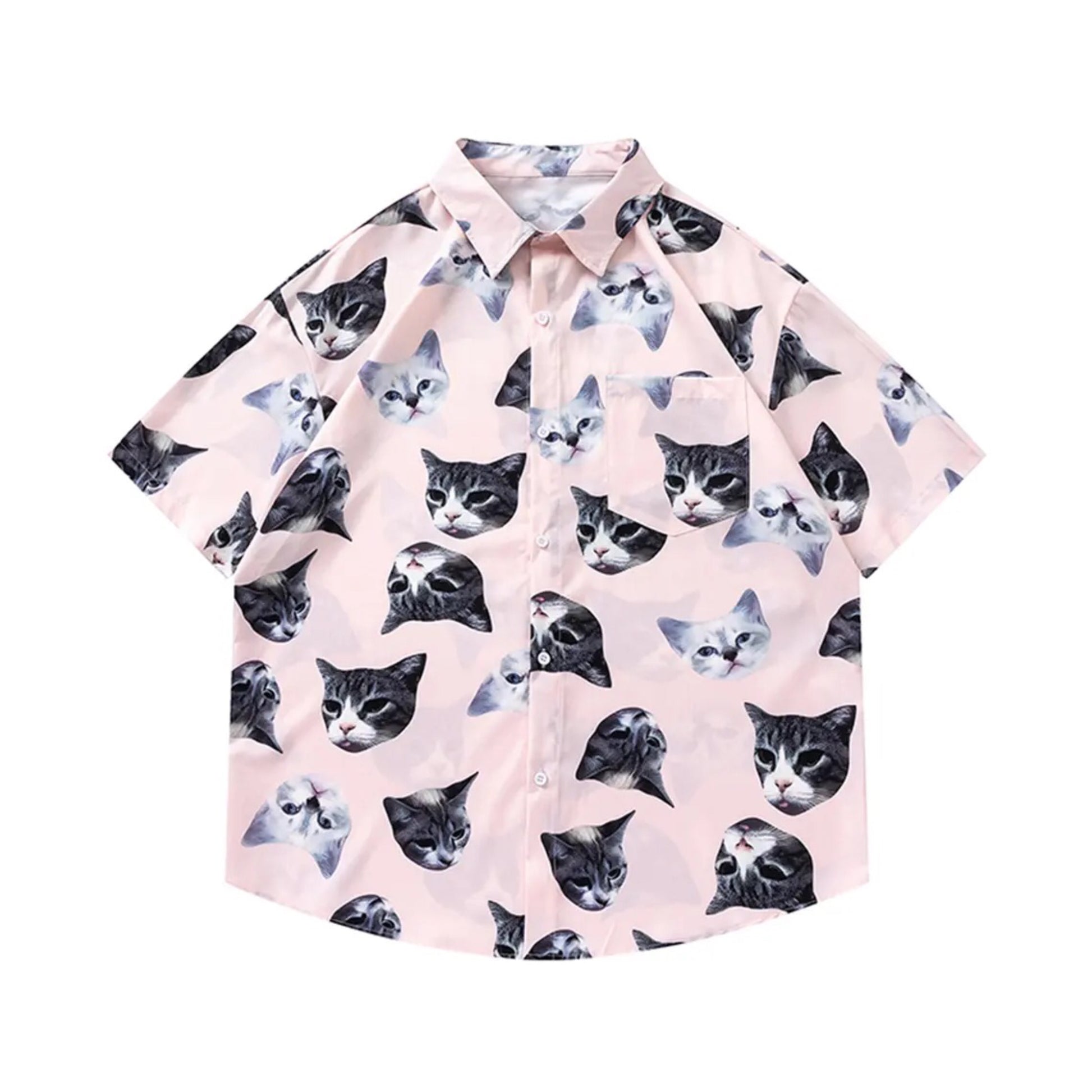 Get ready to add a touch of cuteness and aesthetic to your wardrobe with our Cat Face Print Shirt. Made with a unique cat face print, this shirt is perfect for any cat lover. Embrace your love for felines with this stylish and playful addition to your wardrobe.