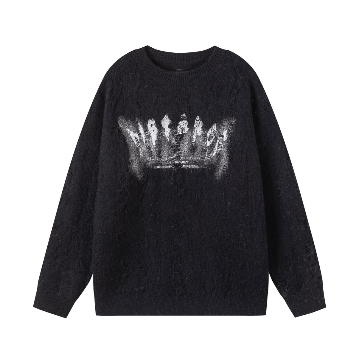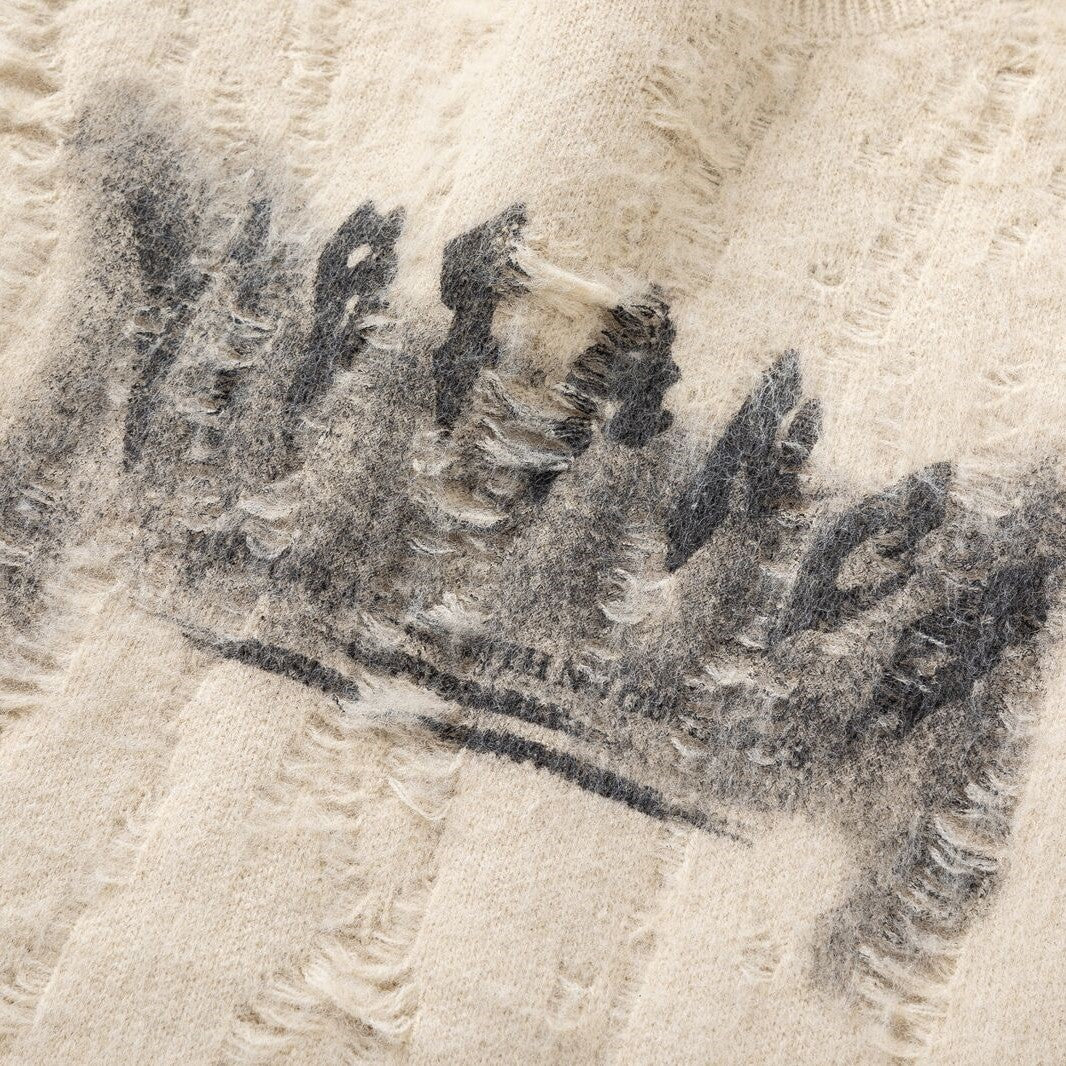 Embrace the edge with the "Chaotic Reign Knit Sweater," a statement piece that blends style with a touch of rebellion. This captivating sweater features a unique graphic design with a distressed crown motif, creating a look that's both edgy and intriguing. The distressed detailing adds a touch of rebellion, giving the sweater a unique and individualistic feel.