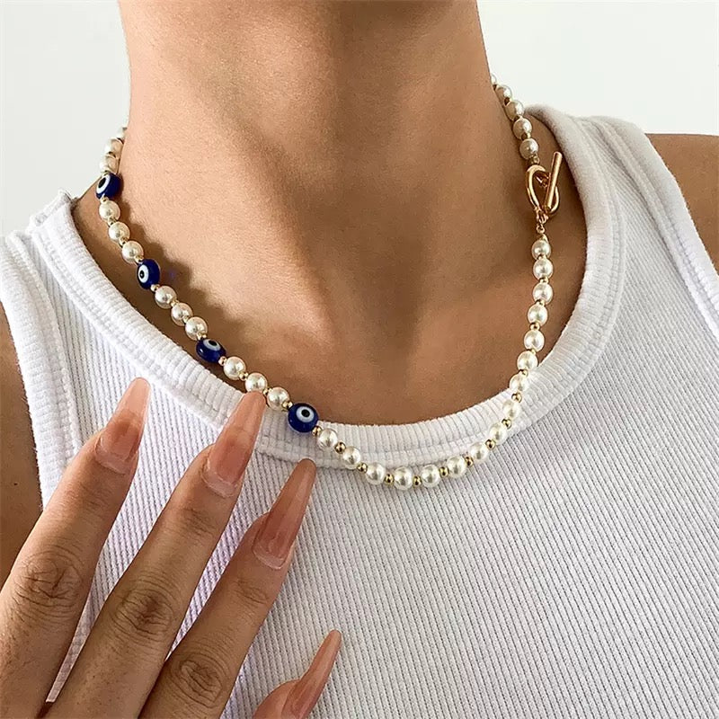 Evil Eye Pearl Necklace