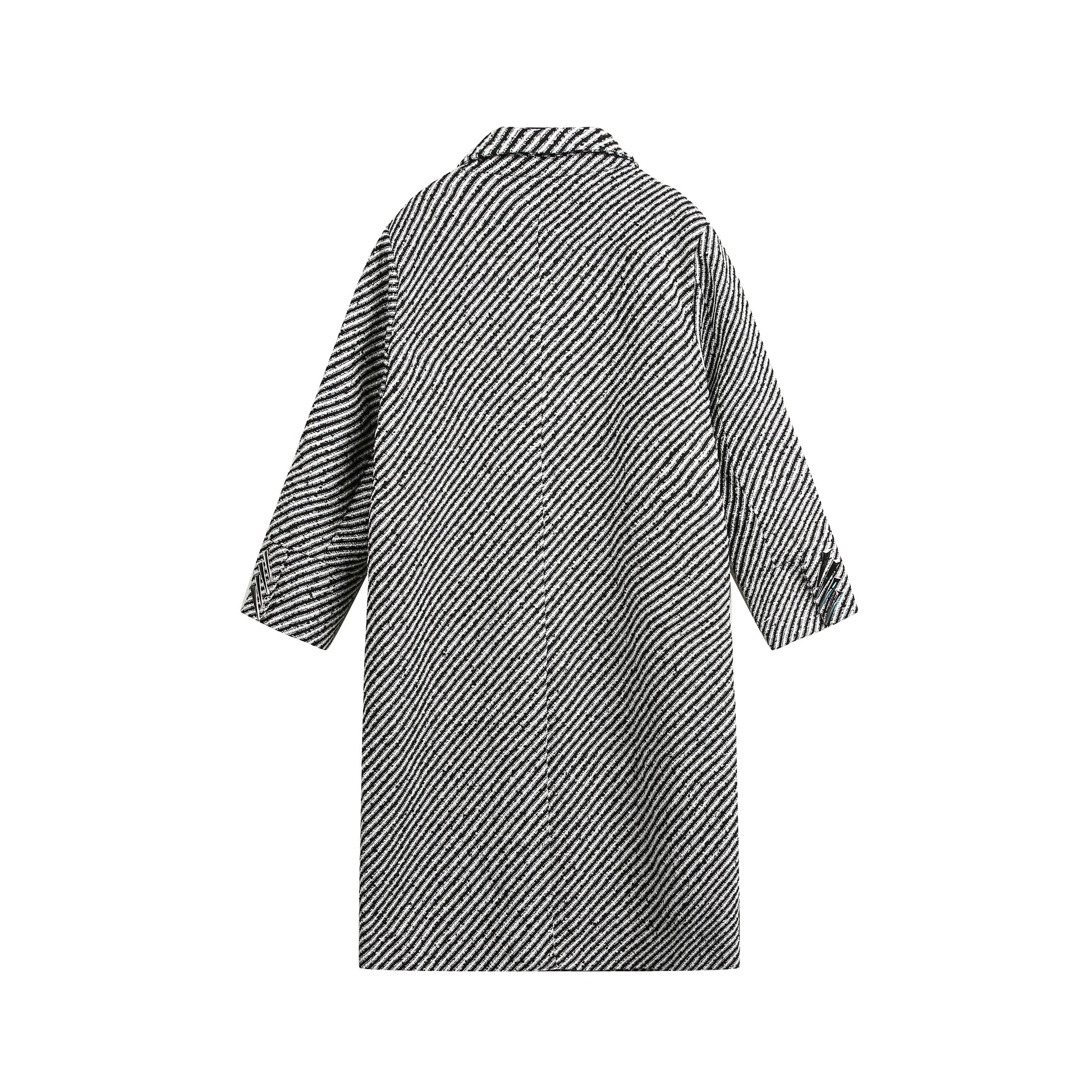 The Herringbone Wool Coat is a timeless classic that radiates sophistication. Its distinctive herringbone pattern adds both texture and visual interest, while the double-breasted closure and lapel collar contribute to a polished appearance. The relaxed fit, combined with the warm wool material, makes it ideal for staying cozy and stylish during the colder months.