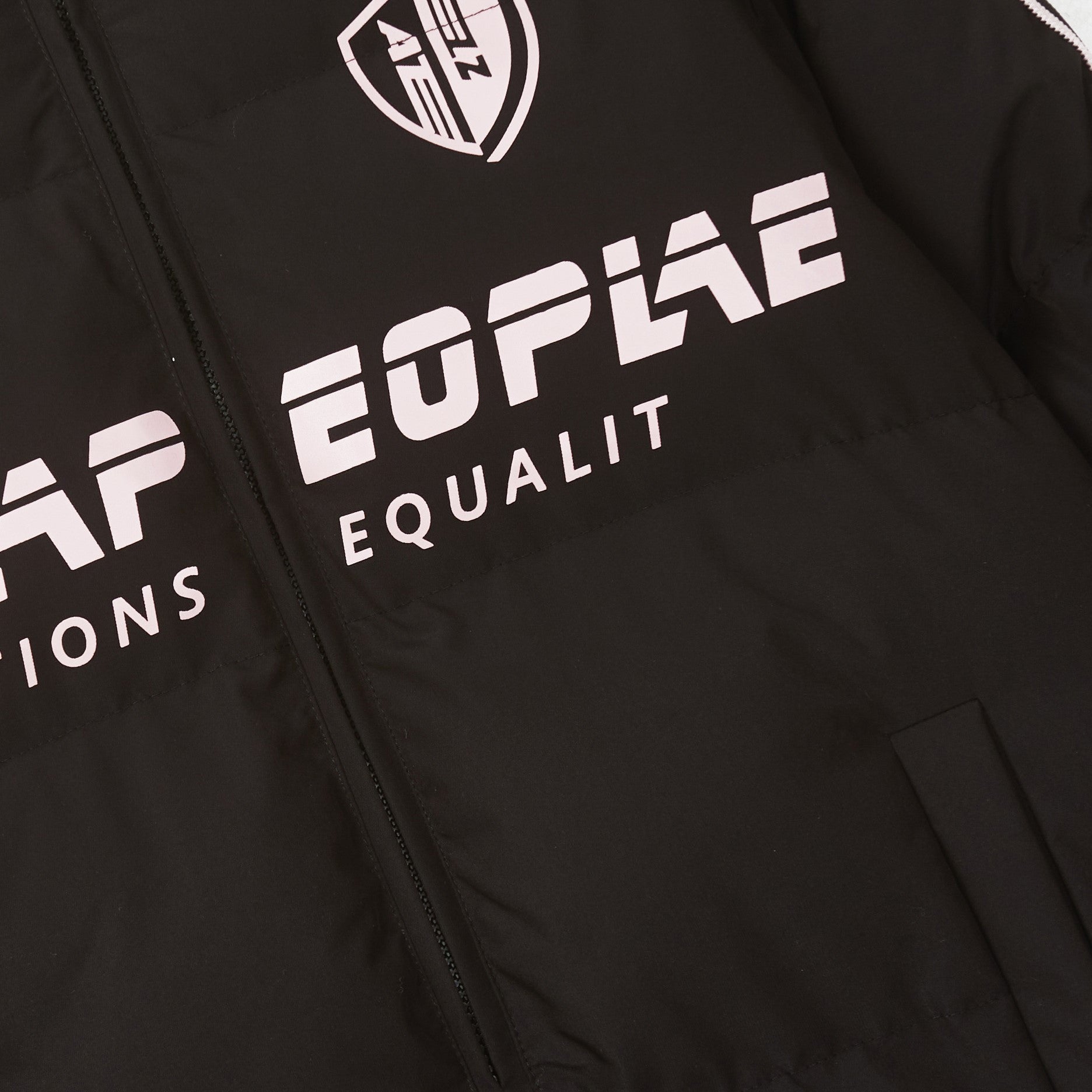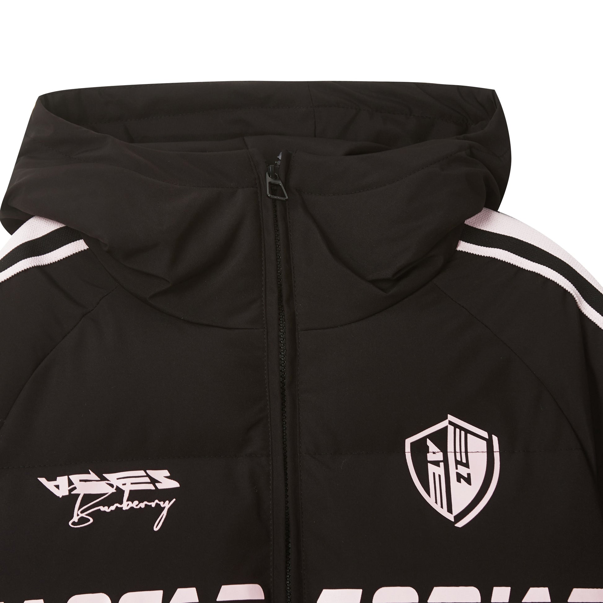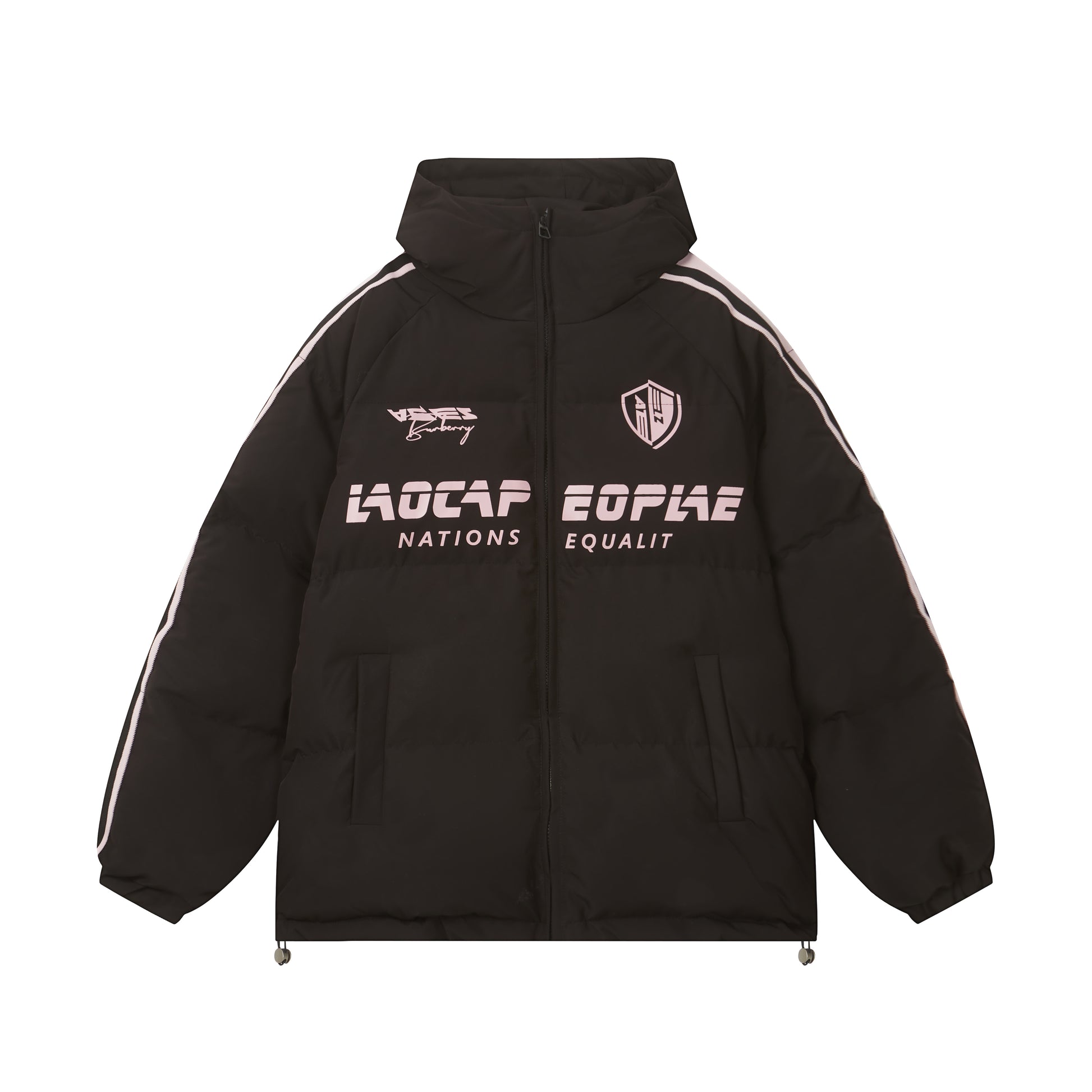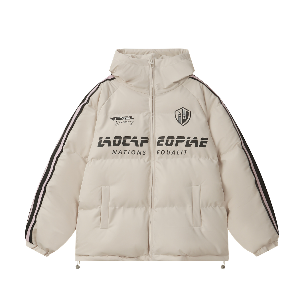 This puffer jacket is a stylish and practical choice for the colder months. The bold stripe design adds a sporty edge, while the high-quality materials ensure warmth and comfort. The oversized hood and drawstring hem provide extra protection from the elements.