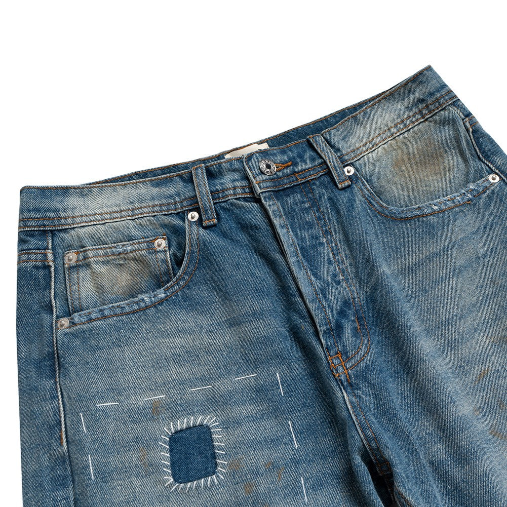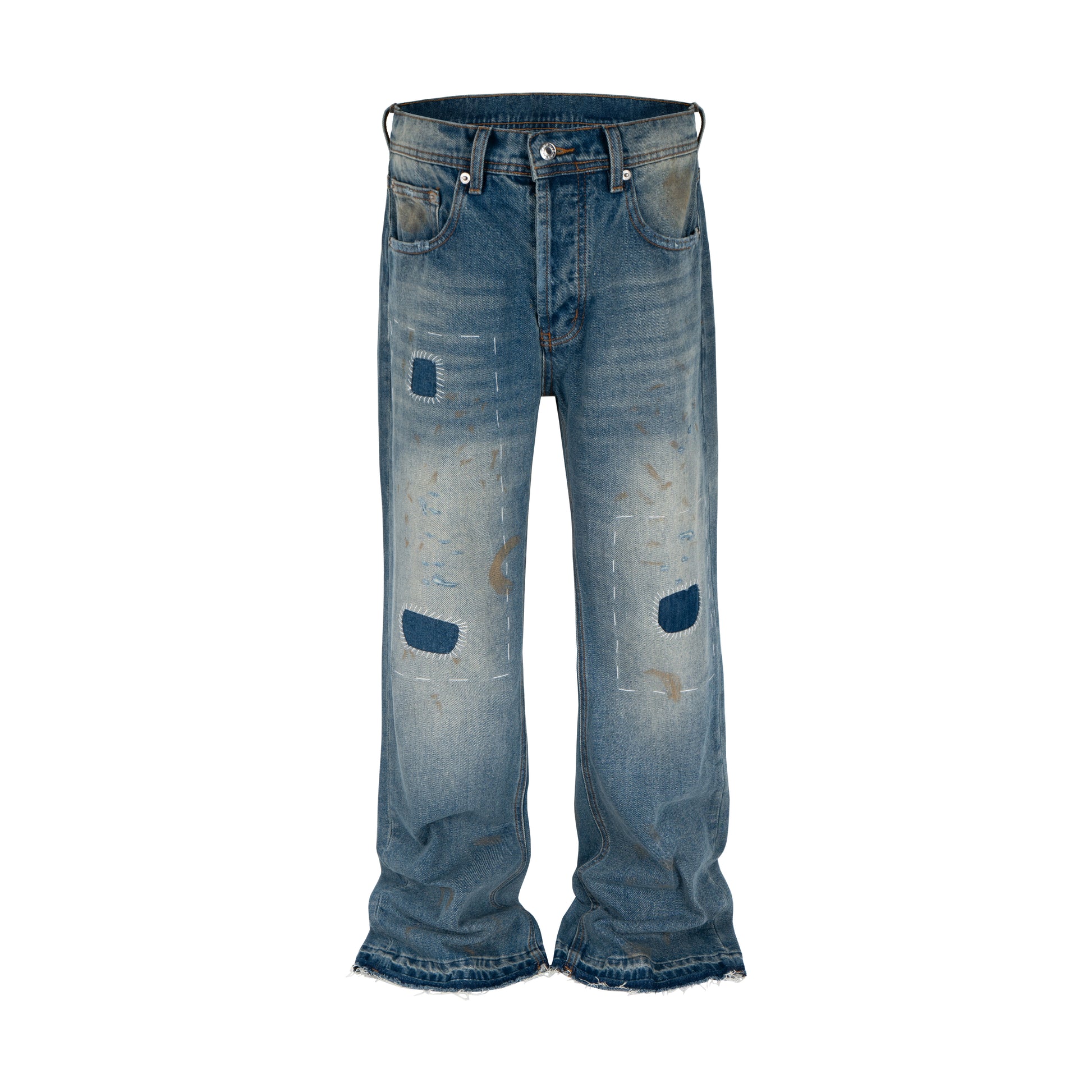Embrace the art of imperfection with the "Reworked Shabby Jean Pants," a statement piece that celebrates individuality and unique style. These jeans boast a distinctive, hand-crafted look with strategically placed patches and purposeful distressing. The result is a one-of-a-kind pair that reflects your rebellious spirit and adds a touch of edge to any outfit.