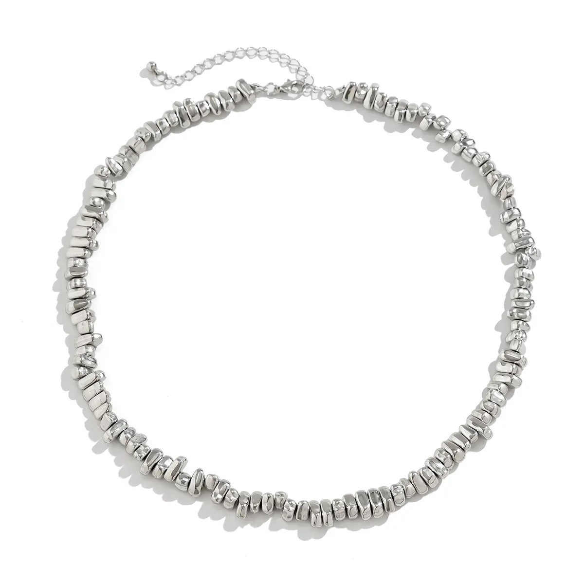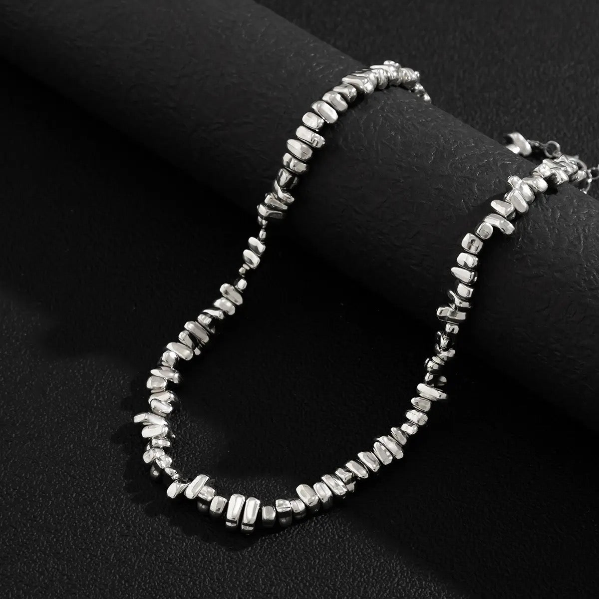 Crafted with precision and style, the Silver Stone Beaded Necklace is the perfect accessory for both men and women. The irregular silver beads add a touch of uniqueness to any outfit. Elevate your look with this versatile and elegant necklace.