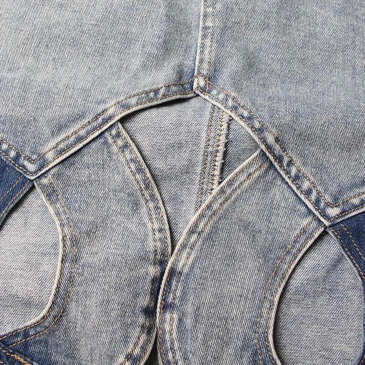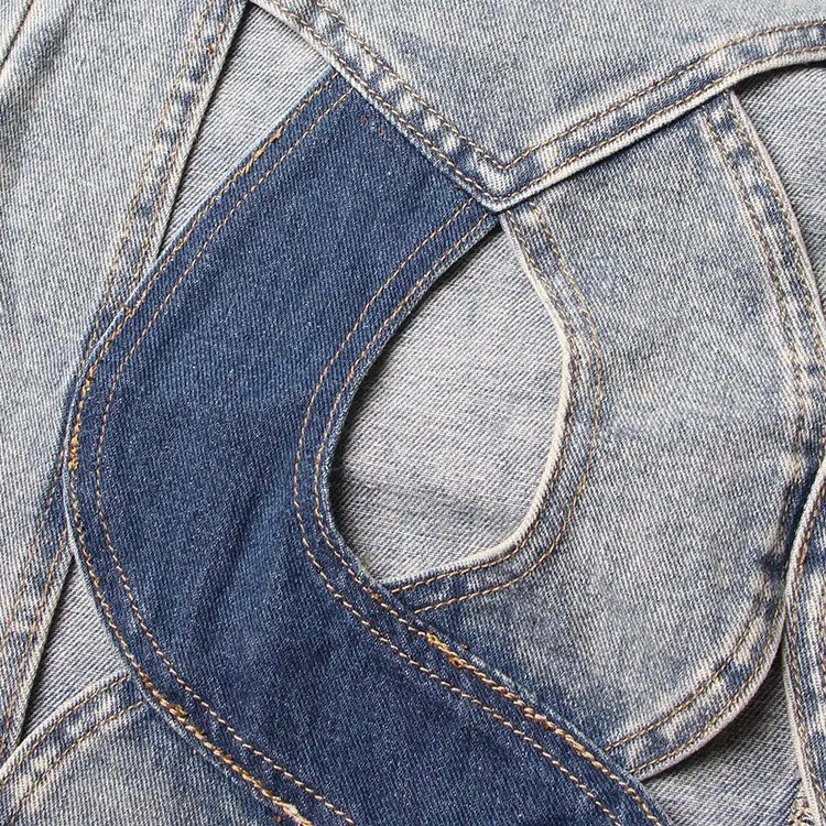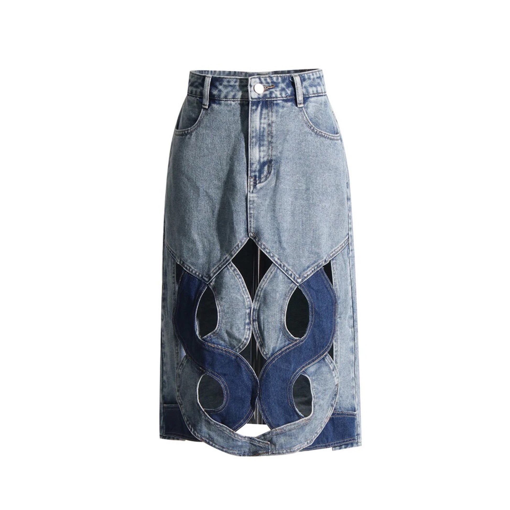Expertly crafted in high-quality denim, our Stitched Elegance Denim Skirt flawlessly combines timeless style with modern design. Featuring a captivating hollow out curve crisscross style and knee-length silhouette, this skirt is both sophisticated and comfortable, making it the perfect addition to any wardrobe.