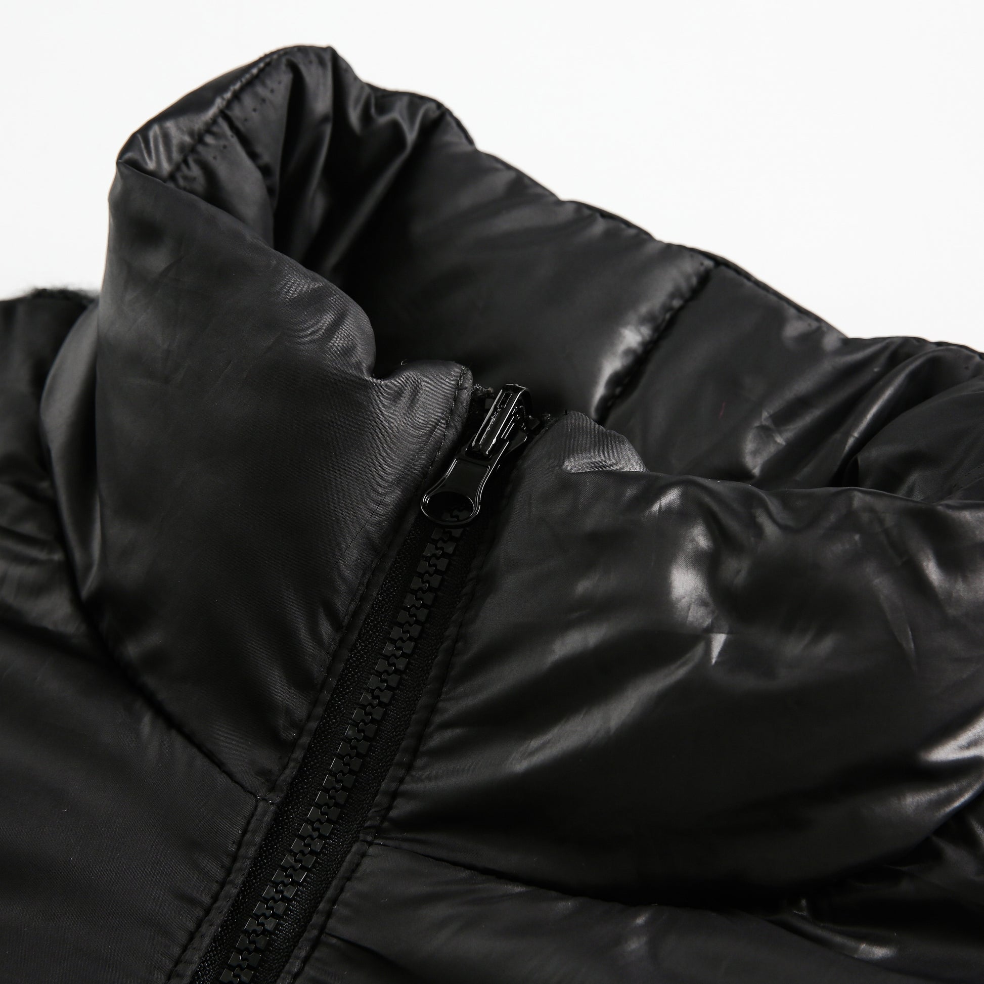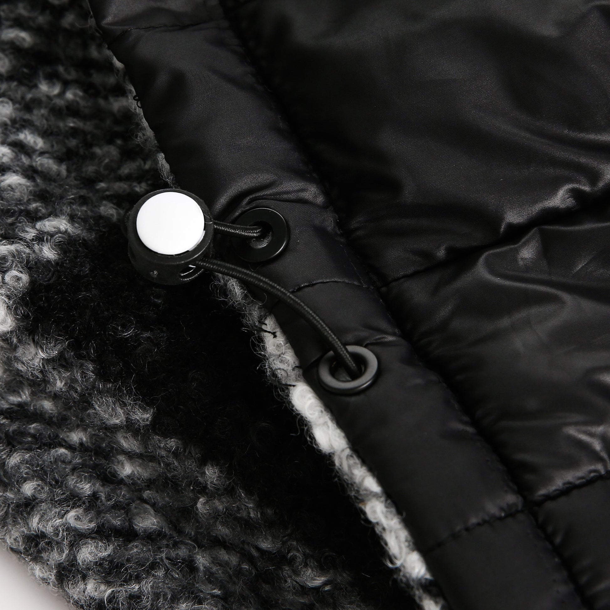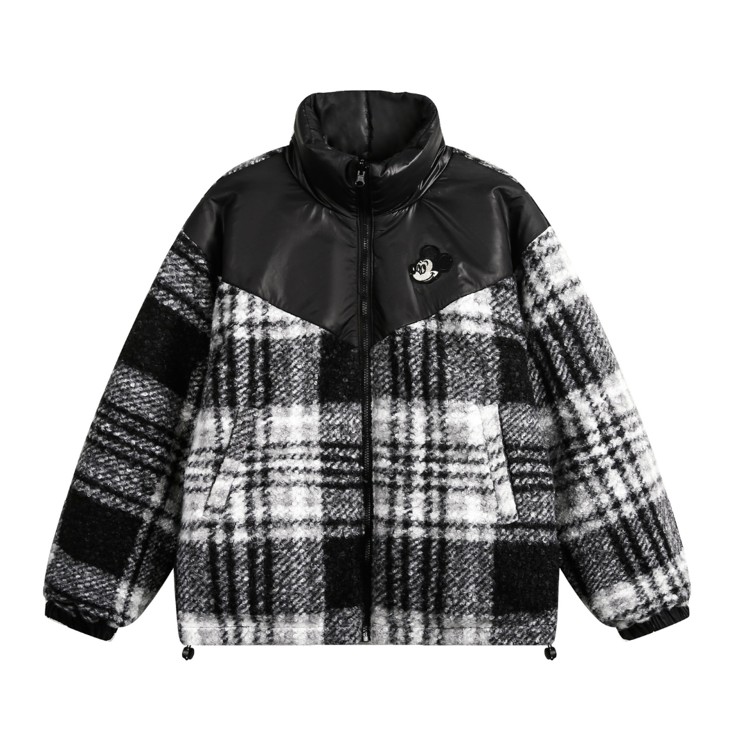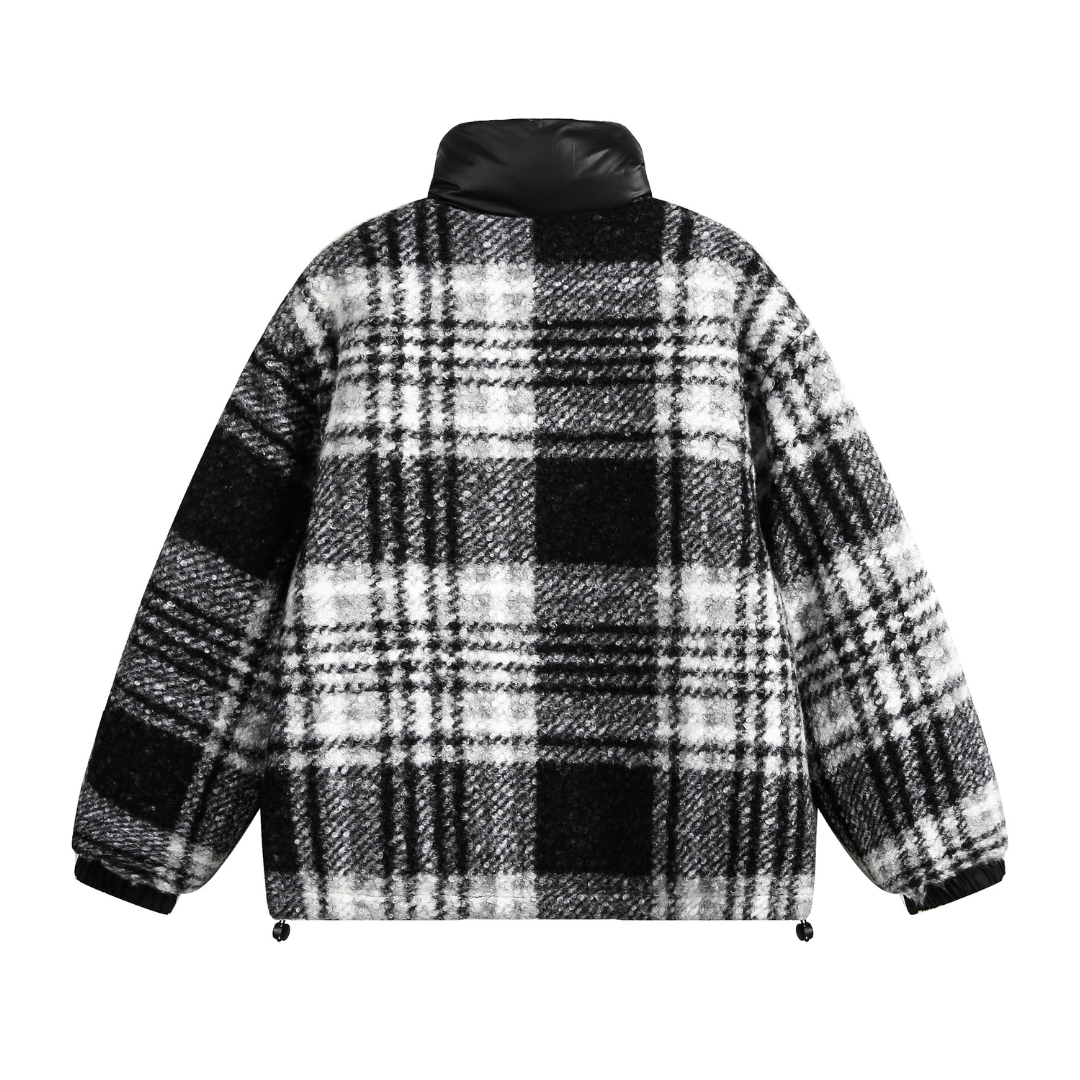 This versatile reversible jacket provides two stylish options: a classic black puffer featuring a contrasting leather-look panel and a cozy, oversized plaid pattern. Made from high-quality materials with meticulous attention to detail, this jacket is both fashionable and functional, ensuring warmth and comfort during colder months. Whether you're out for a casual day or enjoying a night on the town, this jacket is sure to make a statement.