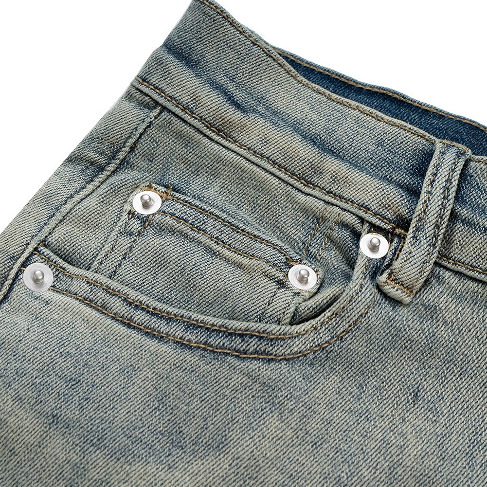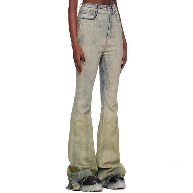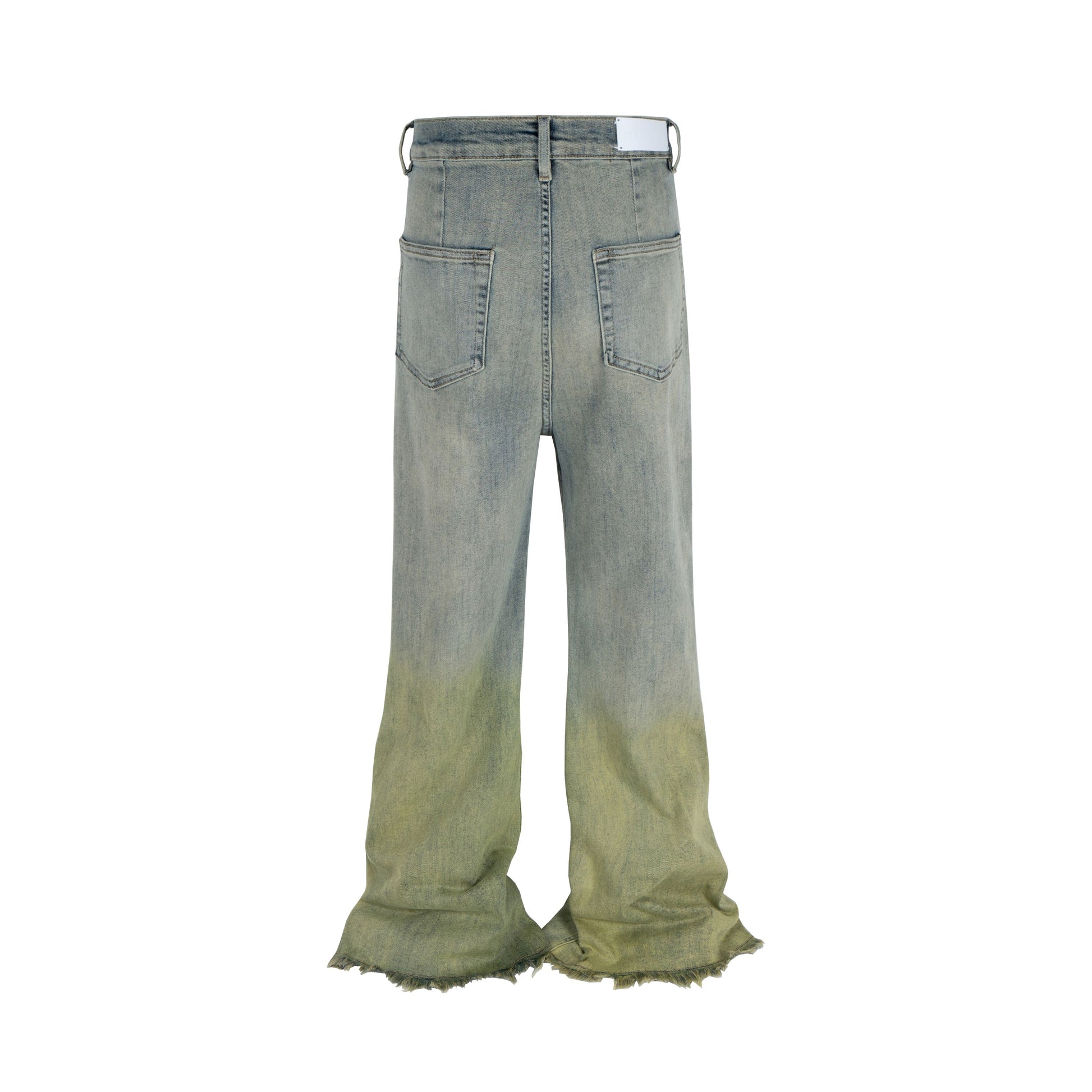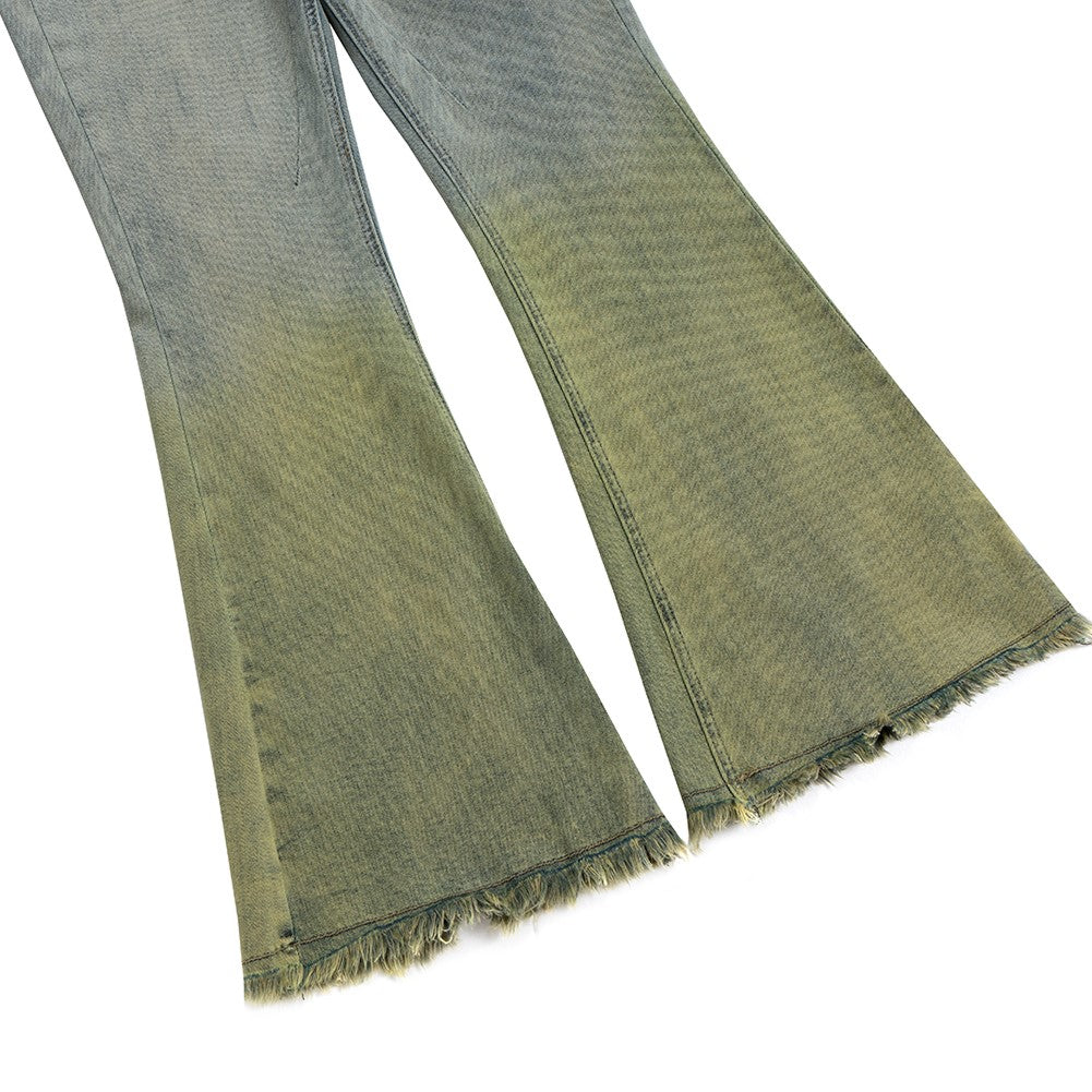 The Sunset Fade Flared Jeans feature a mesmerizing dip-dye effect, transitioning from a lighter wash at the waist to a deeper, richer hue at the dramatically flared hem. This creates a stunning visual effect reminiscent of a breathtaking sunset, adding a touch of magic to your every step.