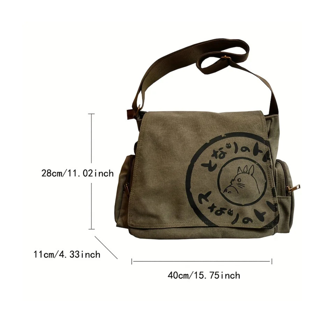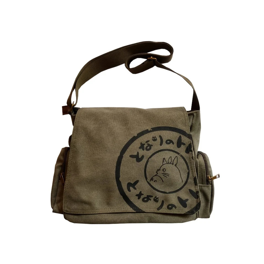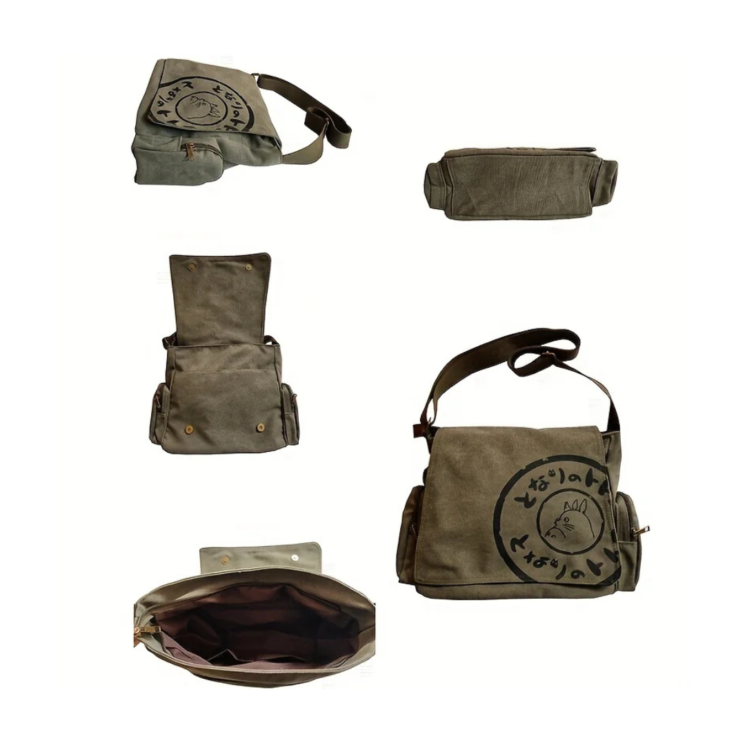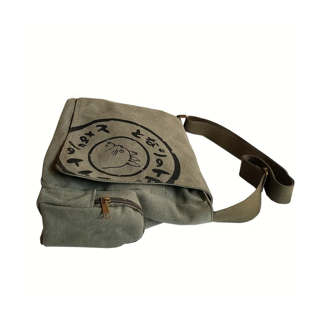 Carry a piece of Ghibli magic wherever you go with the Totoro Messenger Bag, a charming and practical accessory for fans and everyday adventurers alike. This classic messenger bag is crafted from a durable, olive green canvas, giving it a timeless, rugged appeal.