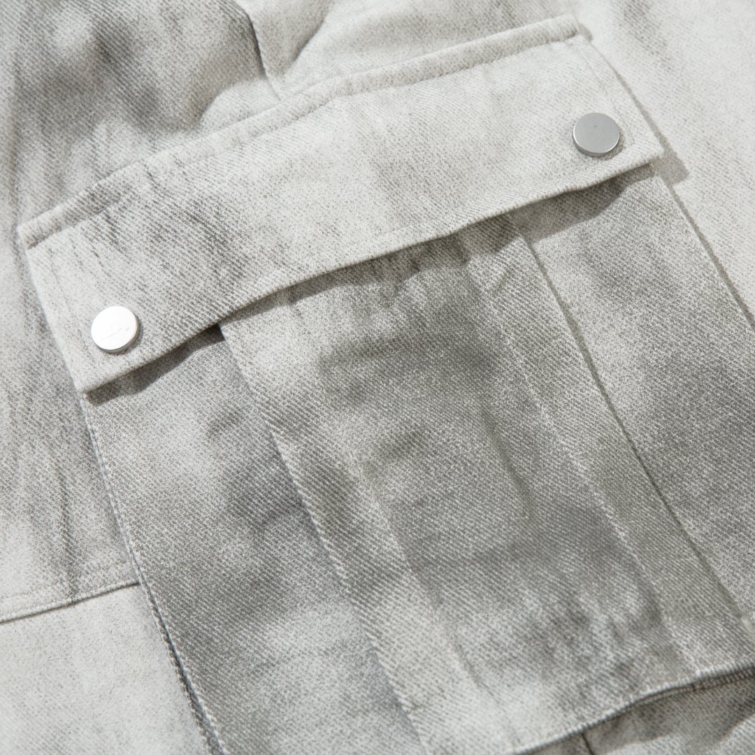 Elevate your style with our White Dirty Wash Cargo Pants - a unisex design crafted from high quality white denim with a unique dirty wash pattern. Stand out from the crowd and make a bold statement with these premium cargo pants.
