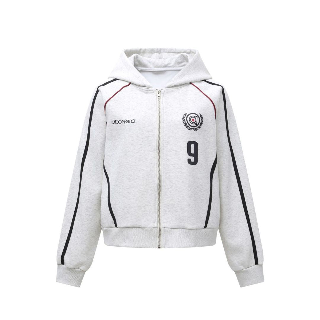 The Division 9 Varsity Hoodie is an essential piece of streetwear, blending classic sport style with modern edge. This full-zip hoodie is available in black and heather grey, featuring bold piping and athletic trim on the sleeves. The chest is detailed with a collegiate-style crest and a large Number 9 graphic, giving this comfortable, relaxed-fit zip-up an exclusive, varsity feel.