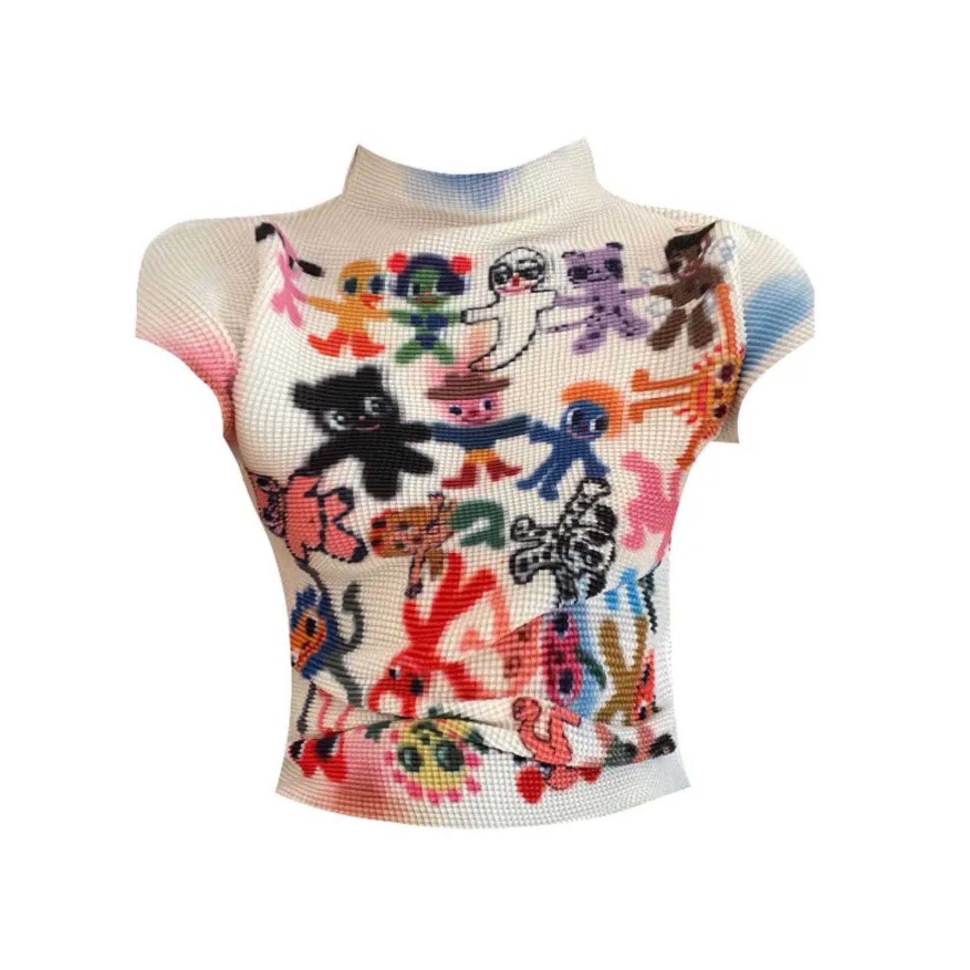 Take a risk and stand out in our Graffitied Friendship Crop Top! Featuring a bold graffiti design with friends, this crop top will inspire you to take on new adventures with your crew. Perfect for a day out with your friends, this top will help you make a statement with style!