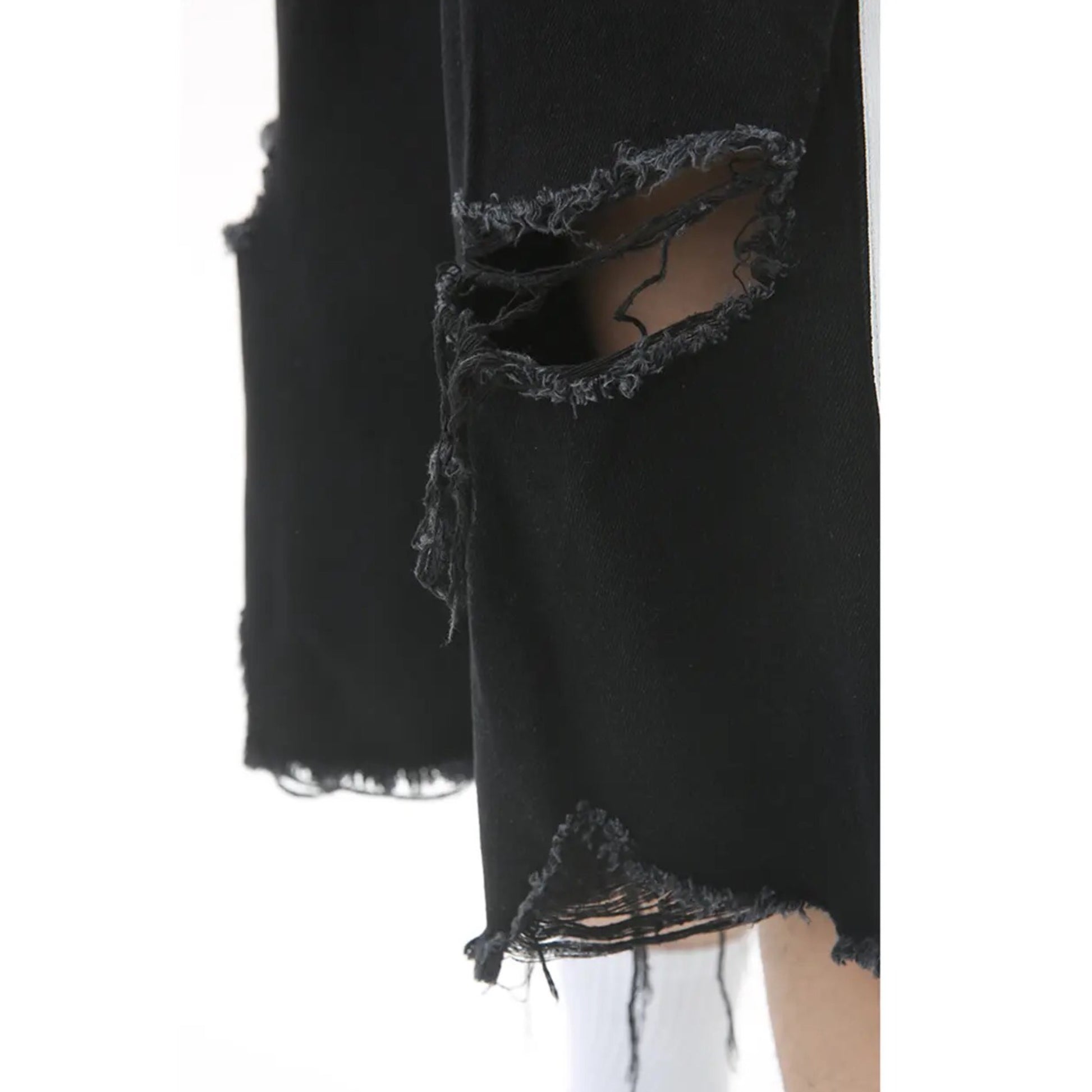 These shorts are the perfect addition to your summer wardrobe. Crafted from lightweight denim fabric, they feature a classic ripped design and unisex fit. The distressed detailing and side stripes add a stylish touch, while the raw hemline gives them a cool, edgy look.