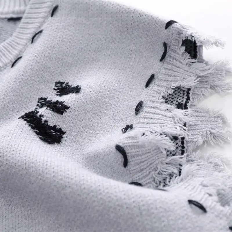 The Urban Distressed Vest is a unique and stylish sweater vest, designed for both men and women. Crafted with high-quality knitting, this versatile piece adds a touch of sophistication to any outfit. Stay warm and trendy with this must-have fashion staple.