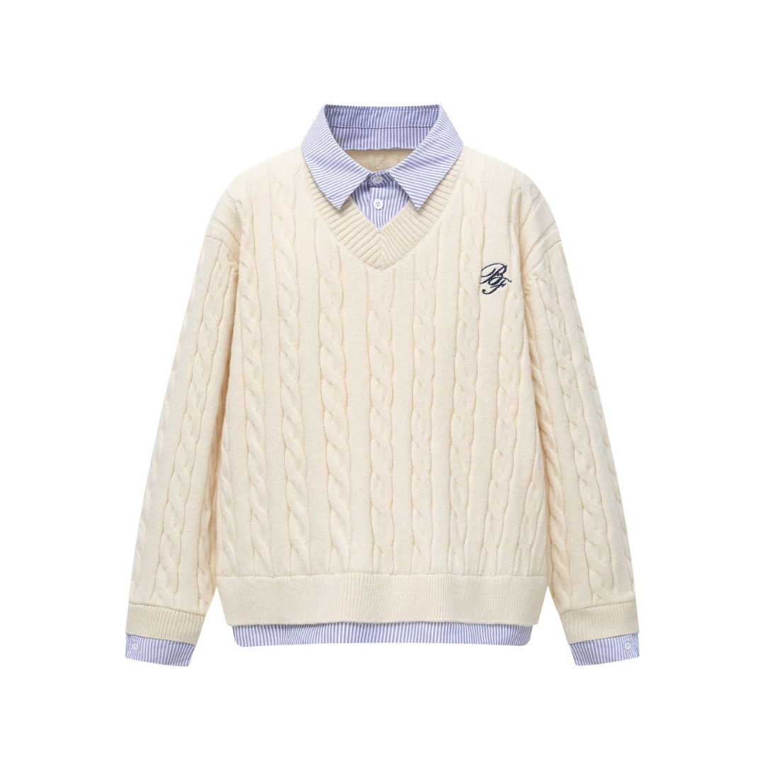 The Varsity Prep Layered Sweater brings an instant classy, old money vibe to your wardrobe. This essential sweater features a clever 2-in-1 design with a cozy V-neck cable knit layered over a built-in pinstripe collared shirt. Get the perfect polished look without the fuss of layering. It's the ultimate preppy piece for a refined streetwear aesthetic.