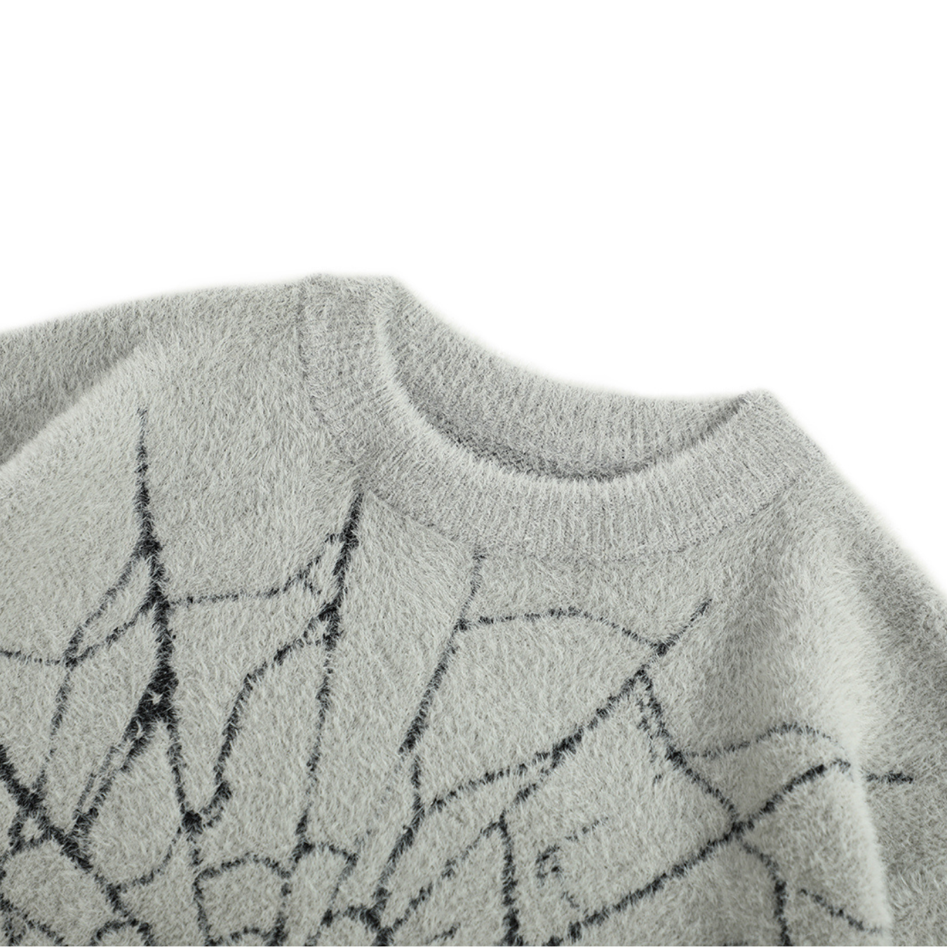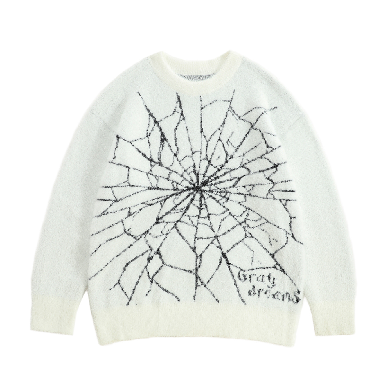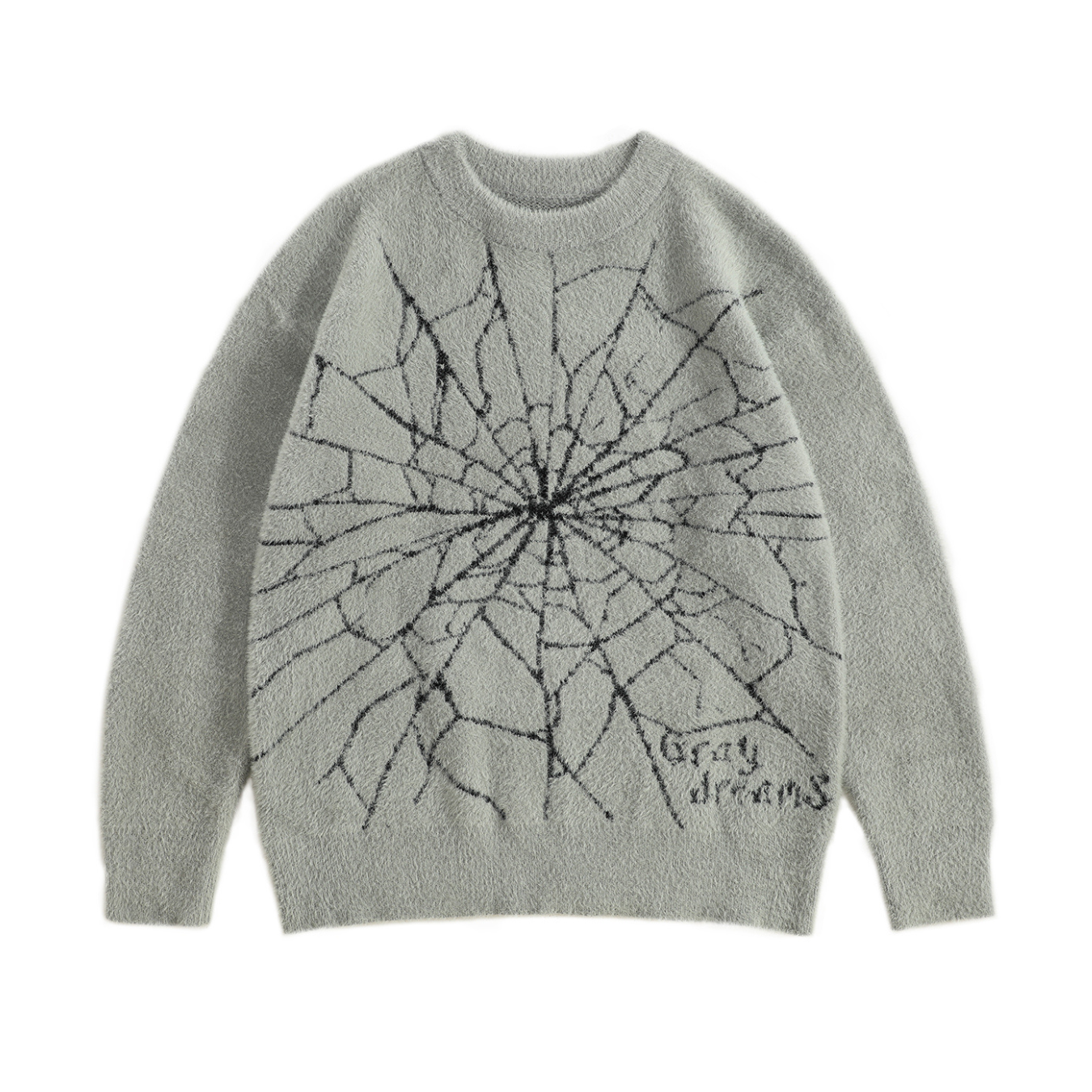 Get lost in the "Web of Dreams Sweater," a statement piece that blends artistry with a touch of the surreal. This captivating sweater features a mesmerizing spiderweb knit pattern, creating a dynamic and eye-catching look. The soft, textured knit fabric offers a luxurious feel against the skin, while the phrase "Gray Dreams" adds a touch of intrigue.